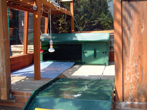 over a small range, as before. Meanwhile, it was November, and the tortoises had been without food for approximately a month. Their usual accommodation consists of a plastic rabbit hutch (grill removed) with an inner compartment, placed inside a greenhouse containing basking and sun lamps. A very small thermostatically-controlled, oil-filled radiator that fits inside the inner hutch provides background heat of a minimum of 12°C overnight (Figure 3).