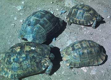 over a group of Mediterranean spur-thighed tortoises that are often described