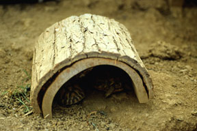 species tortoises raised under hot basking lamps on