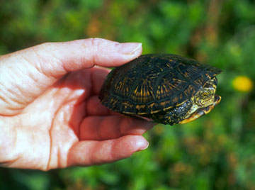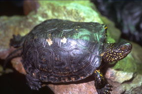 In summary, Emys orbicularis are a highly attractive and interesting turtle, which appears to possess quite a high degree of intelligence. It is certainly very adept at exploiting any opportunity to escape, so good security is important. They are particularly skilful at climbing vertical surfaces. When maintained in good quality, secure environments, however, they are fascinating to watch, and captive breeding may occur with very little artificial intervention required! (c) 2002-2003 Tortoise Trust |