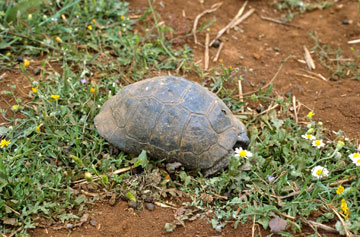 A wild Testudo ibera grazes in Turkey Lin King has an excellent free DOWNLOADABLE FEEDING GUIDE on her website. This is full of good ideas on how to find wild foods for your tortoise. (c) A. C. Highfield/Tortoise Trust 2004 |