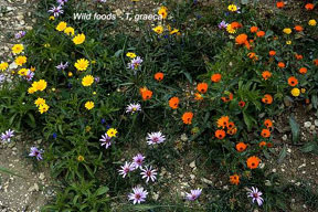 In practice, the important thing is to provide a variety of fresh 'natural' graze. This is vastly superior to 'supermarket salads' and will supply a far greater range of minerals and essential trace elements. The fiber content will also be far high than 'commercial' salads. If you can manage to grow some of these plants in your tortoise enclosure your tortoises will certainly appreciate your efforts. Not only Mediterranean tortoises will benefit from a healthier diet. Ashley Woods, a Tortoise Trust member who keeps and breeds leopard tortoises (Geochelone pardalis), includes several wild plants in their daily die: "This is a summary of a diet regime adopted by myself for a breeding colony of Geochelone pardalis babcocki held in my collection, it is also used with success for other species including all Testudo species and Geochelone sulcata (African spurred tortoise). Many suggested captive diets are all too low in one factor - fiber. Leopard tortoises must have a high fiber intake. During spring, summer and early Autumn all my tortoises are fed a diet of 85% wild greens and flowers, commercial greens and fruits are offered as a treat, usually on a once weekly basis. Wild food is not only high in fiber but also has the correct calcium/phosphorus ratio. When collecting wild foods take care of pesticides, try to be familiar with your local area and have 'safe' places for collecting. Also try to leave the roots intact so the plant can recover and grow again. A list of