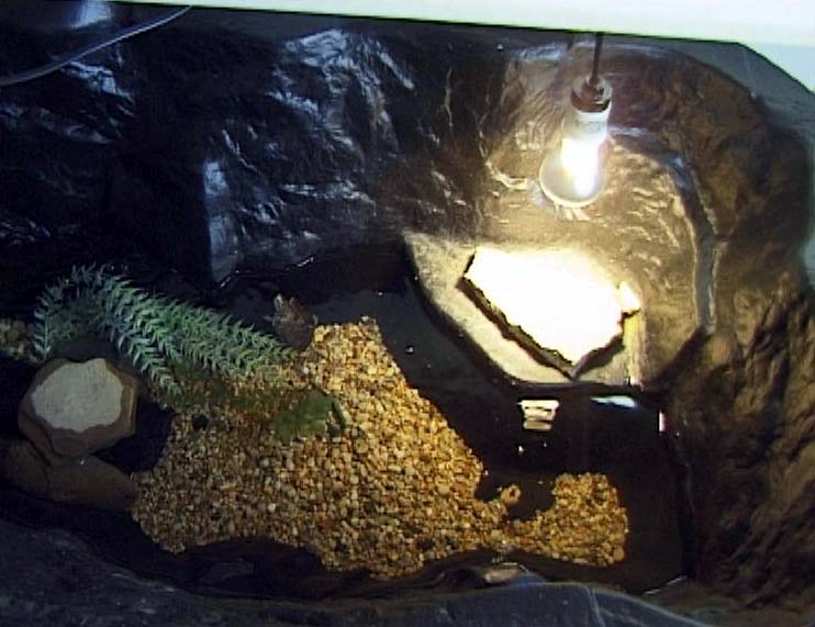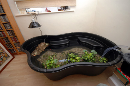 indoor habitat based on this system If you choose to raise your pond up higher to keep your turtle out of the reach of a toddler’s fingers or a curious dog, be certain to use very sturdy materials that will be able to withstand the extreme weight of the pond when it is filled with water. We used 1/2 inch plywood with 4 x 4 inch posts to support our 60 gallon pond. Decorative framing materials can also be extended beyond the pond’s upper edge to provide additional protection if needed. It should be noted that a square or rectangular pond will give more water volume than a curvaceous design, but you may prefer the latter for the sake of appearance. Cost: A small pond (45-60 gallons) can be obtained for as little as $30. Larger models range from $45 to $90. This compares very favourably indeed to glass tanks, where models suitable for turtle maintenance typically cost well in excess of $150-$200. You will also require: