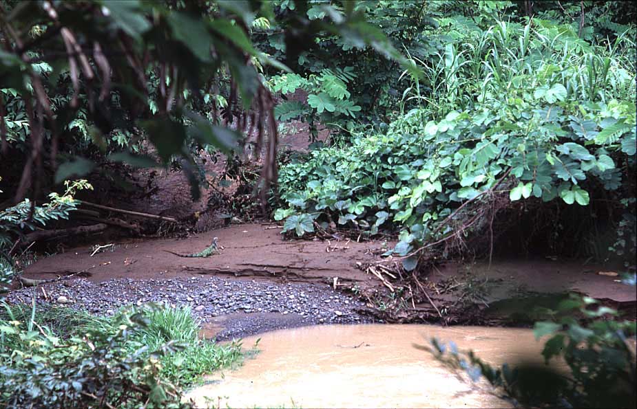 Tortoises and turtles that live on the rainforest floor (or at the edges of rainforest clearings) tend to feed upon a wide variety of fallen fruits, are often omnivorous, and enjoy regular access to rainforest pools and streams. Typical examples of these species might include Geochelone denticulata (the Yellowfoot tortoise) and Rhinoclemmys funerea (the Black pond turtle) from tropical Central America, or Kinixys homeana (Home's Hingeback tortoise) from the tropical African rainforest. It is typical that such species are not great baskers, tend to have soft, rather than scaly skin and limbs, and possess large eyes - all features well suited to a cryptic lifestyle in the dark, humid rainforest floor.