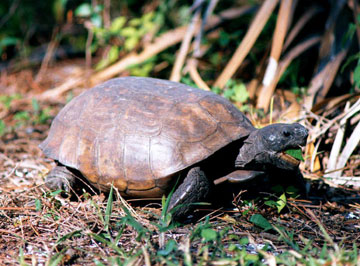 A wild Gopherus polyphemus (Florida gopher tortoise) browses upon leaves and flowers in its natural habitat: providing adequate diets in captivity is a challenge for keepers, but it can be done. Q. The reptile expert at the pet store says that all that a tortoise really needs is a vivarium and a diet of lettuce and fruit. Your site does not agree with this. Who should I believe? A. It is very difficult for beginners when they receive such conflicting advice. Before we show you the actual effects of the method your pet store 'expert' is recommending, we would point out that pet stores are interested in making a sale. They also want to sell you expensive vivarium equipment in addition to the animal. We are not trying to sell you anything - we are merely trying to prevent your animal suffering as a result of incorrect advice. Our advice is free. We strongly recommend that if you are unsure, join the Tortoise Trust e-mail list. There are more than 1,000 keepers on that list from all over the world who can give you totally impartial help and advice. That said, this is what will happen to your tortoise on the diet this 'expert' is suggesting: